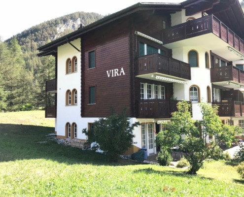 Das Haus Vira liegt auf einem Hügel im südlichen Teil von Zermatt in Winkelmatten/obere Tuftra, umgeben von Wiesen und Wäldern in einem wunderschönen Garten. Vom Haus Vira geniessen Sie einen fantastischen Blick auf das Matterhorn und die Berge.